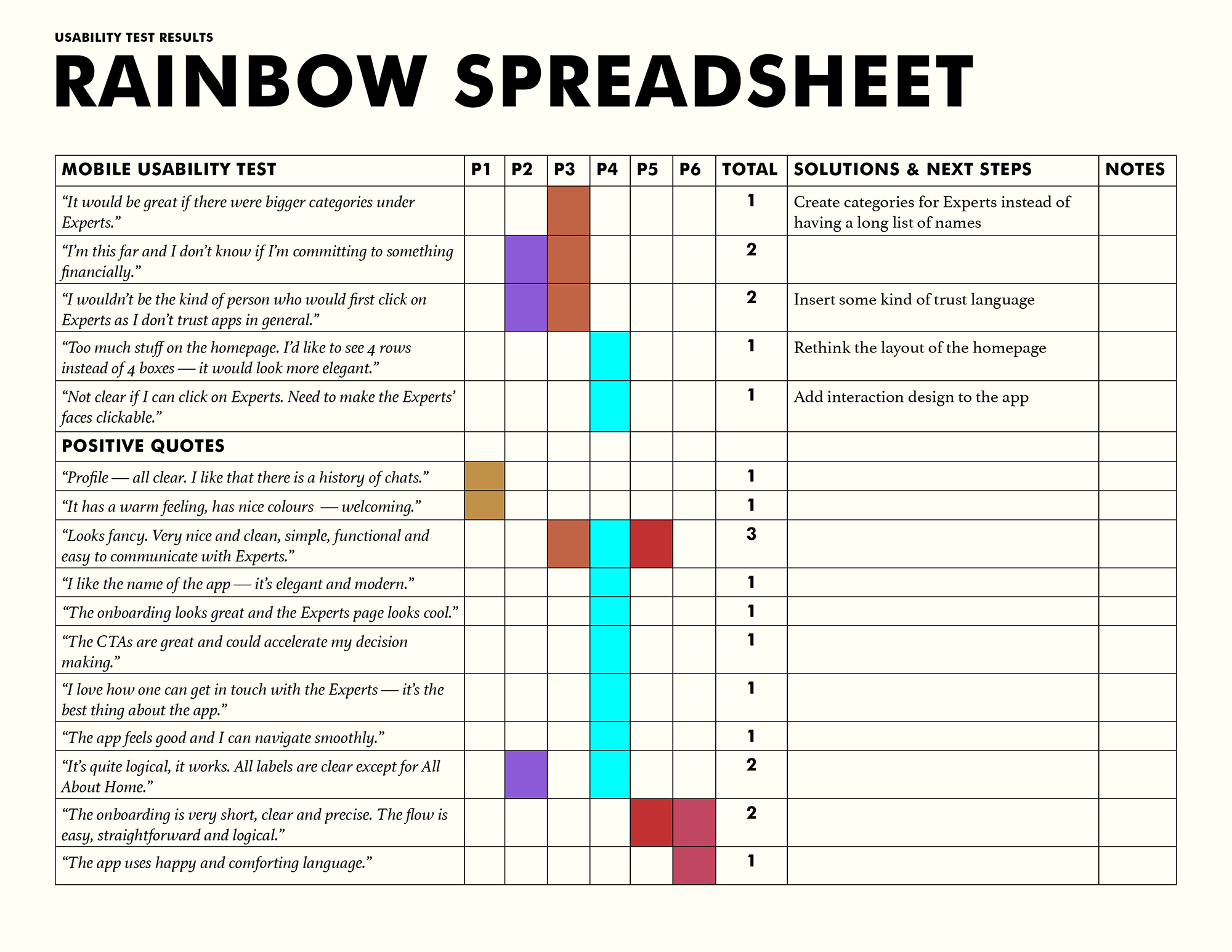 The test results, along with a comprehensive analysis of errors, observations, and feedback (both positive and negative), are presented in rainbow spreadsheets. Within these sheets, I also documented my proposed solutions and outlined the subsequent steps that led to the final prototype.