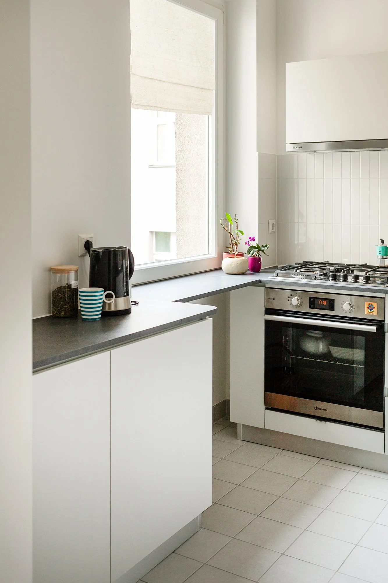 With its sizable window and lofty ceilings, maximizing natural light was a priority. To achieve this, I decided against installing upper cabinets near the window, as suggested by IKEA. This choice ensured that the window remained unobstructed, allowing ample light to filter into the space. I also preserved a small opening between the kitchen and bathroom walls to maintain light flow into both areas.